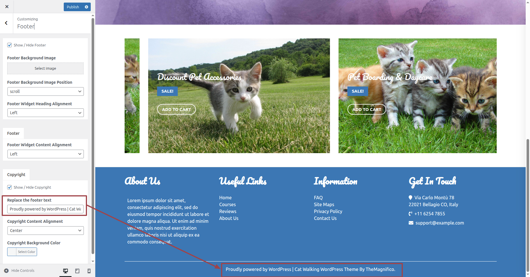 Navigate Customize == About Us Option