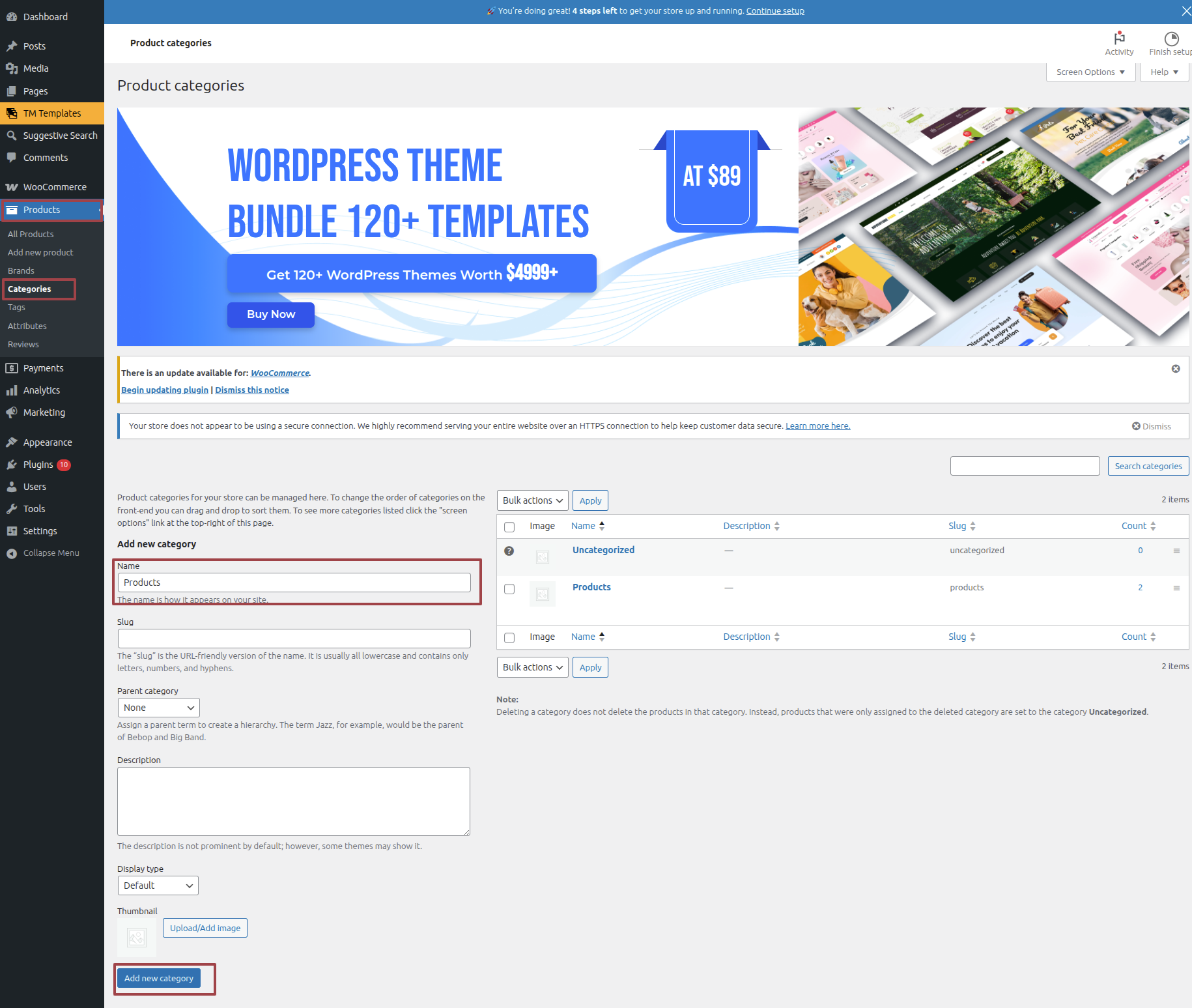Navigate Dashboard == Product == Categories