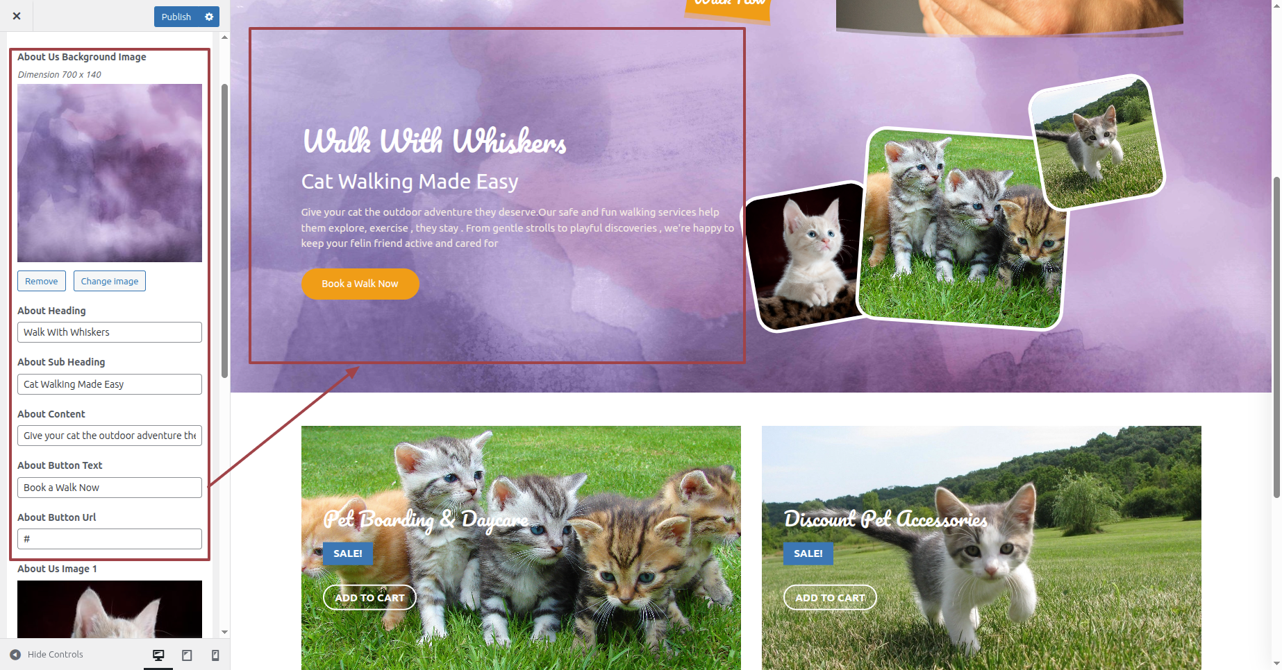 Setting up About Us Section