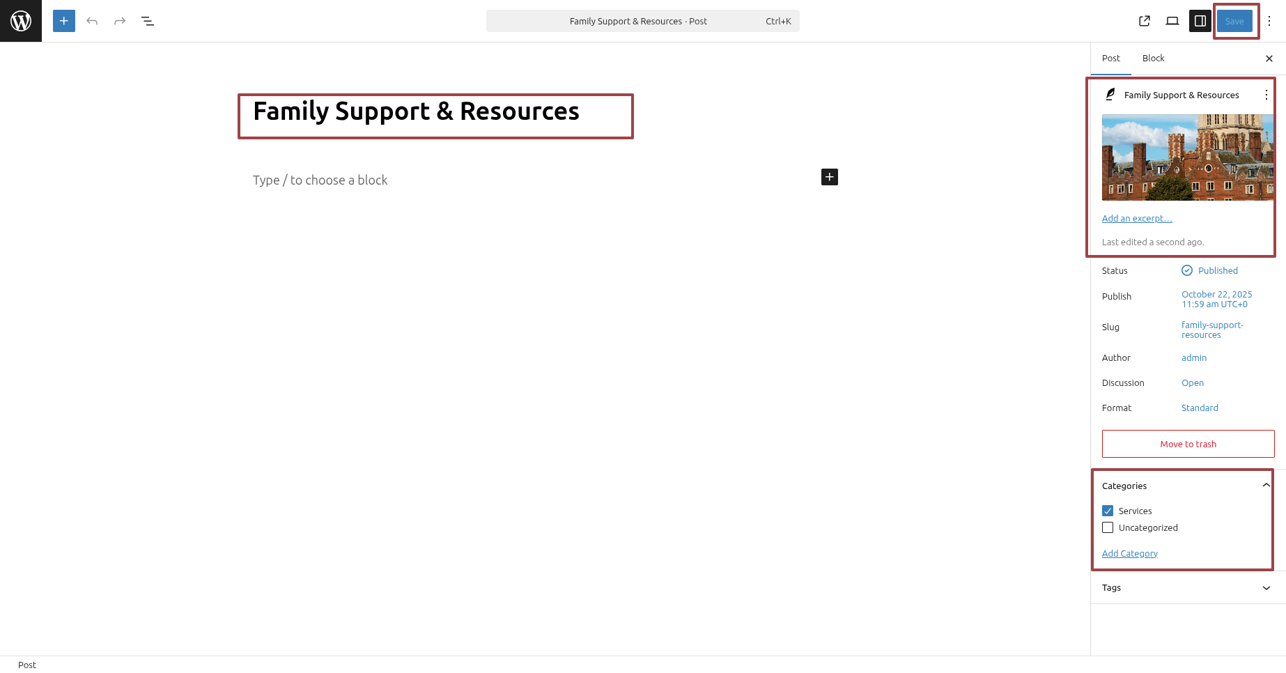 - Then, to select Categories for your post click on Categories.