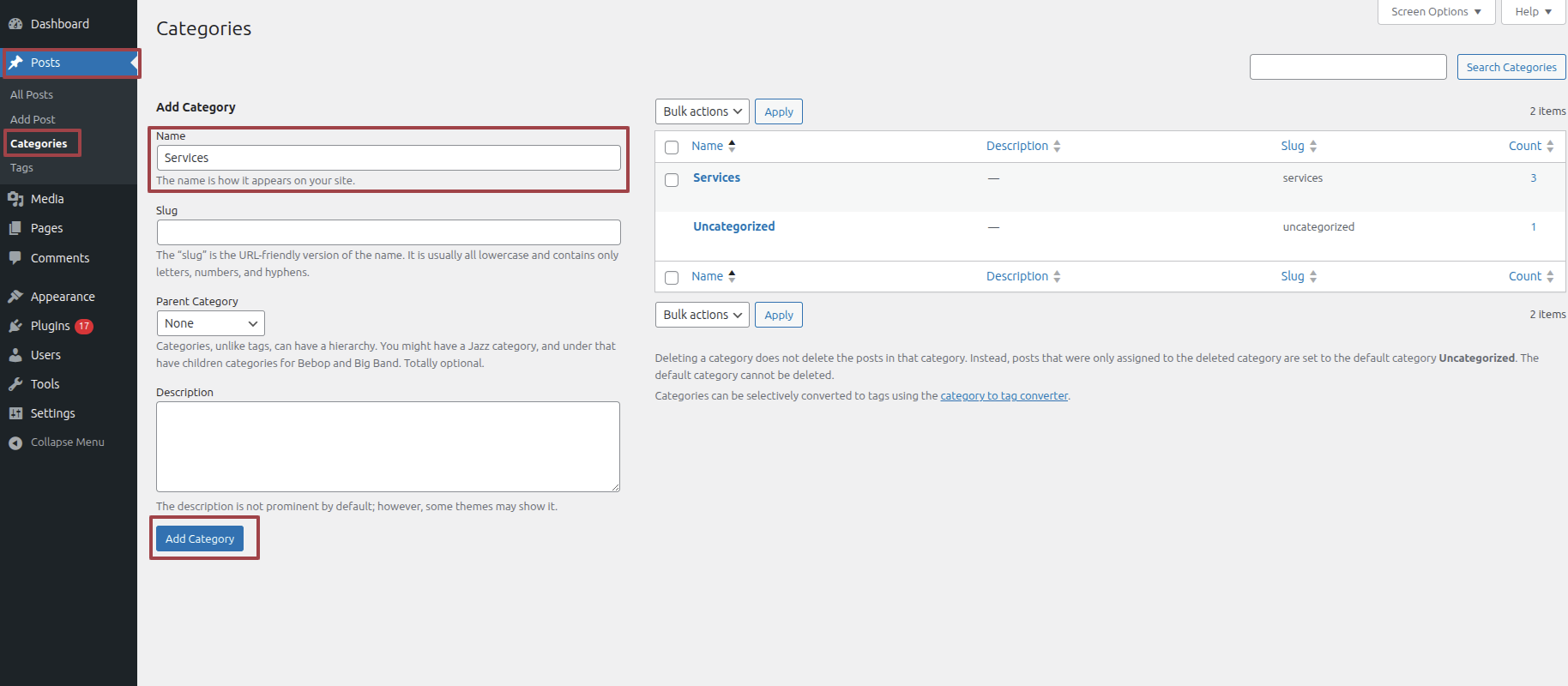 - Now type the category name you need to categorise your blog into