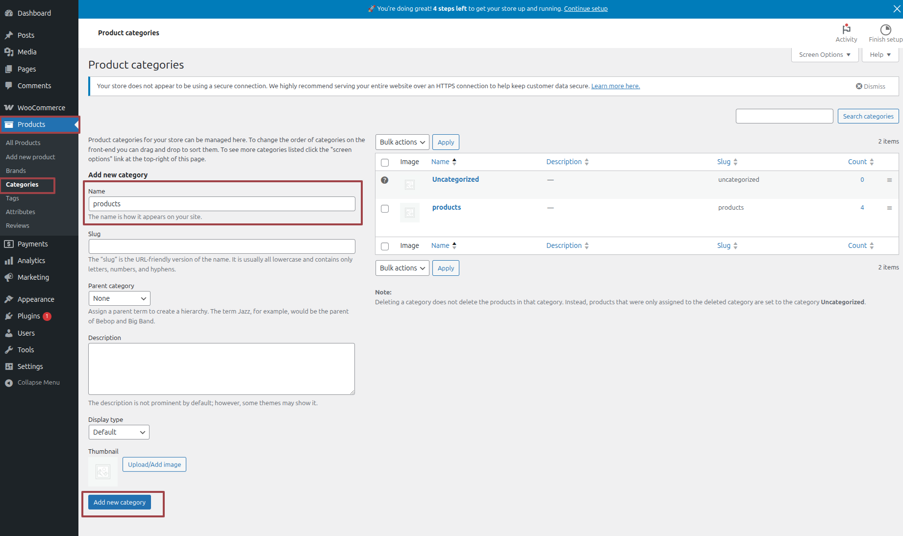 Adding category